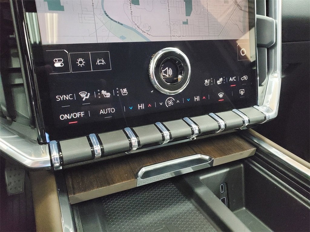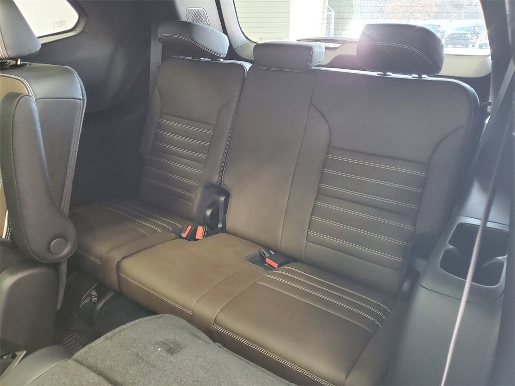 AWD, Woodland Mahogany Leather, 16 Speakers, 3.49 Final Drive Axle Ratio, 3rd Row 60/40 Power Split-Folding Bench, 3rd row seats: split-bench, 4-Wheel Disc Brakes, 6-Way Power Front Passenger Seat Adjuster, 7-Passenger Seating (2-2-3 Seating Configuration), 8-Way Power Driver Seat Adjuster, ABS brakes, Air Conditioning, Alloy wheels, AM/FM radio: SiriusXM with 360L, Apple CarPlay/Android Auto, Auto High-beam Headlights, Auto-dimming door mirrors, Automatic temperature control, Bodyside moldings, Brake assist, Bumpers: body-color, Compass, Delay-off headlights, Driver 4-Way Power Lumbar Seat Adjuster, Driver door bin, Driver Power Massage Seat, Driver vanity mirror, Dual front impact airbags, Dual front side impact airbags, Electronic Stability Control, Emergency communication system: OnStar Services capable, Exterior Parking Camera Rear, Four wheel independent suspension, Front anti-roll bar, Front Bucket Seats, Front Center Armrest, Front dual zone A/C, Front fog lights, Front Passenger 4-Way Power Lumbar Seat Adjuster, Front Passenger Power Massage Seat, Front reading lights, Full Leather Seat Trim, Fully automatic headlights, Garage door transmitter, Genuine wood console insert, Genuine wood dashboard insert, Genuine wood door panel insert, Heads-Up Display, Heated door mirrors, Heated front seats, Heated rear seats, Heated steering wheel, Illuminated entry, Leather steering wheel, Low tire pressure warning, Memory Package, Memory seat, Navigation System, Occupant sensing airbag, Outside temperature display, Overhead airbag, Overhead console, Panic alarm, Passenger door bin, Passenger vanity mirror, Power door mirrors, Power driver seat, Power Liftgate, Power moonroof, Power passenger seat, Power steering, Power windows, Radio data system, Rain sensing wipers, Rear air conditioning, Rear anti-roll bar, Rear reading lights, Rear side impact airbag, Rear window defroster, Rear window wiper, Remote keyless entry, Security system, Speed control, Speed-sensing steering, Split folding rear seat, Spoiler, Sport steering wheel, Steering wheel memory, Steering wheel mounted audio controls, Tachometer, Telescoping steering wheel, Tilt steering wheel, Traction control, Trip computer, Turn signal indicator mirrors, Variably intermittent wipers, Ventilated front seats, Voltmeter, Wheels: 22 x 8.5 After Midnight Machined Aluminum, AWD, Woodland Mahogany Leather.