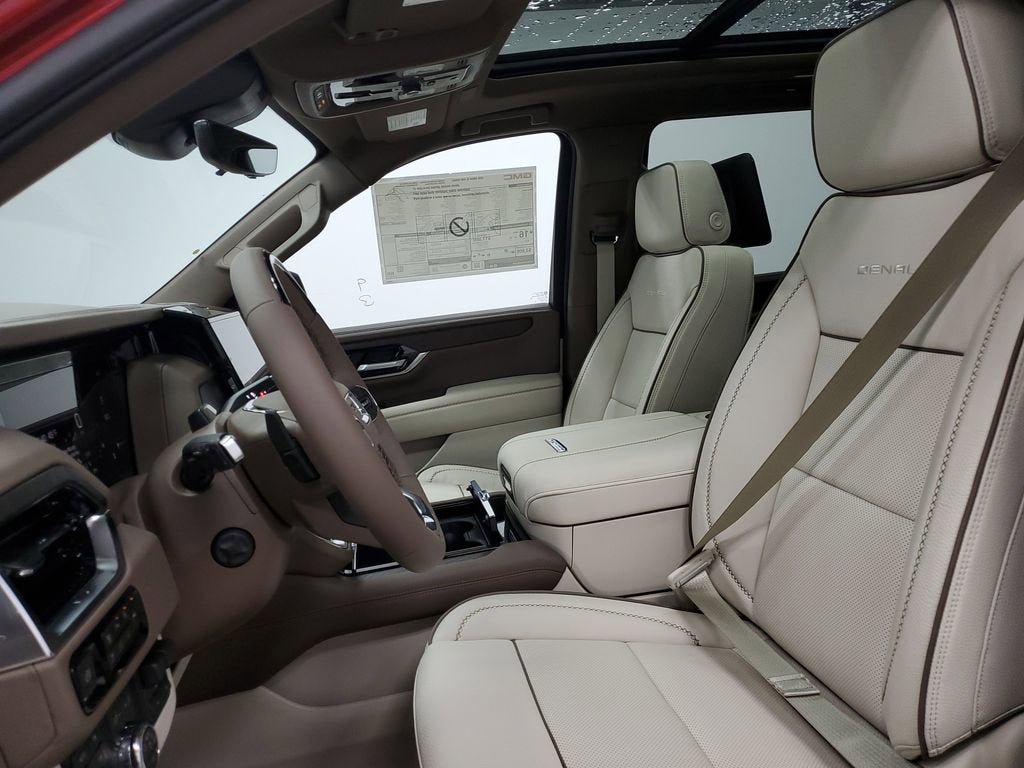 4WD, 10 Speakers, 15 Diagonal Multi-Color Head-Up Display, 22 Bright Split-Spoke Wheels, 3 Years OnStar One, 3.23 Rear Axle Ratio, 3rd Row All-Weather Floor Liners, 3rd row seats: split-bench, 4-Way Power Driver Lumbar Seat Adjuster, 4-Way Power Front Passenger Lumbar Seat Adjuster, 4-Wheel Disc Brakes, ABS brakes, Adaptive suspension, Advanced Security Package, Advanced Technology Package, Air Conditioning, All-Weather Cargo Mat, Alloy wheels, AM/FM radio: SiriusXM with 360L, Apple CarPlay/Android Auto, Audio memory, Auto High-beam Headlights, Auto-dimming door mirrors, Auto-dimming Rear-View mirror, Auto-leveling suspension, Automatic temperature control, AutoSense Hands-Free Power Liftgate, Blind Zone Steering Assist with Trailering, Bodyside moldings, Bose 10-Speaker Surround with CenterPoint, Brake assist, Bright Front and Rear Door Sill Plates, Bumpers: body-color, Compass, Delay-off headlights, Driver Attention Assist, Driver door bin, Driver vanity mirror, Dual Exhaust System, Dual front impact airbags, Dual front side impact airbags, Dual-Pane Panoramic Power Sunroof, Electronic Stability Control, Emergency communication system: OnStar and GMC connected services capable, Exterior Parking Camera Rear, Extra Capacity Cooling System, First and Second Rows Premium Floor Liners, Floor Liner Package, Four wheel independent suspension, Front anti-roll bar, Front Bucket Seats, Front Center Armrest, Front dual zone A/C, Front fog lights, Front reading lights, Fully automatic headlights, Galvano Bodyside Moldings, Garage door transmitter, Glass Breakage Sensor, Heads-Up Display, Heated door mirrors, Heated Driver and Front Passenger Seats, Heated front seats, Heated rear seats, Heated steering wheel, Hill Descent Control, Hitch View, Illuminated entry, Inside Rearview Auo-Dimming Rear Camera Mirror, Integrated Trailer Brake Controller, Low tire pressure warning, Magnetic Ride Control Suspension, Max Trailering Package, Memory seat, Navigation system: GMC Connected Navigation, Occupant sensing airbag, Outside temperature display, Overhead airbag, Overhead console, Panic alarm, Passenger door bin, Passenger vanity mirror, Perforated Heated and Ventilated Driver and Front Passenger Seats, Perforated Leather Seating Surfaces, Power door mirrors, Power driver seat, Power Liftgate, Power passenger seat, Power Release 2nd Row Bucket Seats, Power steering, Power Tilt and Telescopic Steering Column, Power windows, Preferred Equipment Group 5SA, Radio: 16.8 Diagonal Premium GMC Infotainment System, Rain sensing wipers, Rear air conditioning, Rear anti-roll bar, Rear reading lights, Rear Seat Media System, Rear window defroster, Rear window wiper, Remote keyless entry, Security system, SiriusXM with 360L, Smart Trailer Integration Indicator, Speed control, Speed-sensing steering, Split folding rear seat, Spoiler, Steering wheel memory, Steering wheel mounted audio controls, Super Cruise, Tachometer, Telescoping steering wheel, Theft-Deterrent Alarm System, Tilt steering wheel, Traction control, Trip computer, Turn signal indicator mirrors, Variably intermittent wipers, Vehicle Inclination Sensor, Vehicle Interior Movement Sensor, Ventilated front seats, Voltmeter, Wheels: 20 x 9 6-Spoke Polished Aluminum, Wheels: 22 x 9 Steel Interim, 4WD.