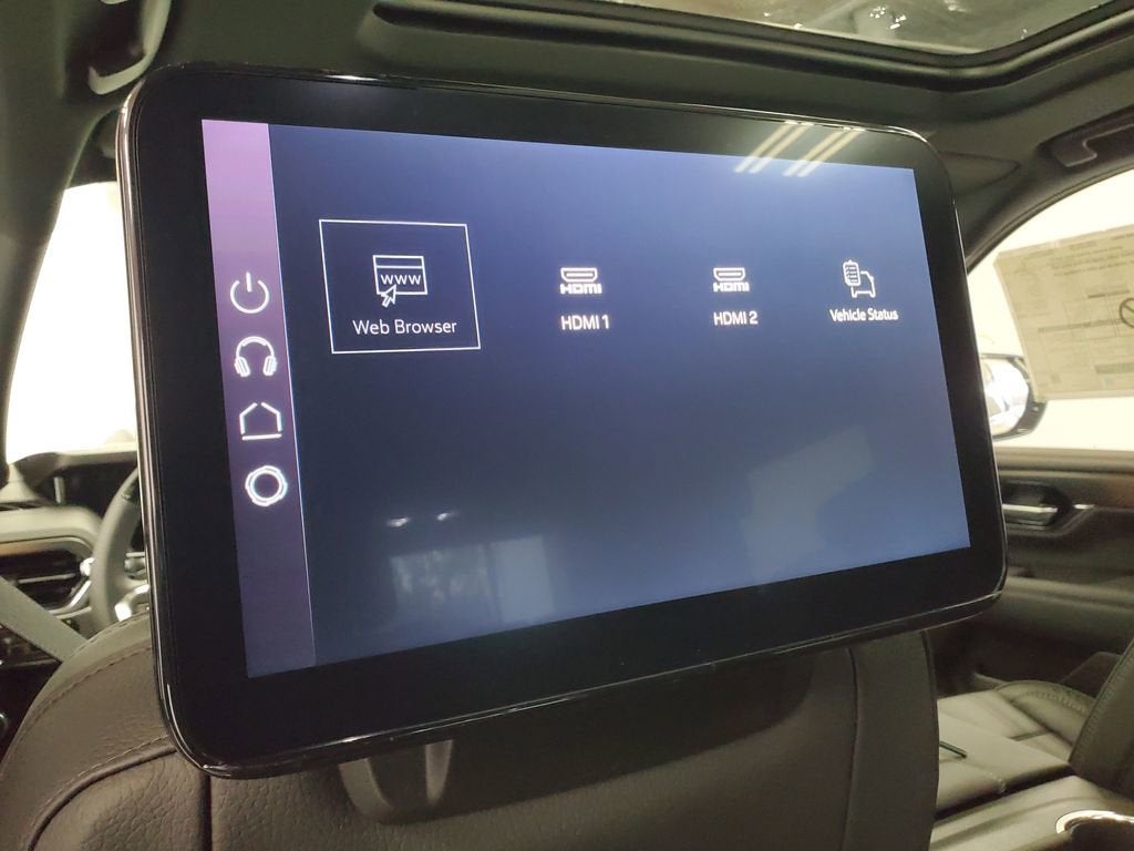 4WD, 10 Speakers, 15 Diagonal Multi-Color Head-Up Display, 22 Multi-Spoke Gloss Black Wheels, 3 Years OnStar One, 3.23 Rear Axle Ratio, 3rd Row All-Weather Floor Liners, 3rd row seats: split-bench, 4-Way Power Driver Lumbar Seat Adjuster, 4-Way Power Front Passenger Lumbar Seat Adjuster, 4-Wheel Disc Brakes, ABS brakes, Adaptive suspension, Advanced Security Package, Advanced Technology Package, Air Conditioning, Air Ride Adaptive Suspension, All-Weather Cargo Mat, Alloy wheels, AM/FM radio: SiriusXM with 360L, Apple CarPlay/Android Auto, Audio memory, Auto High-beam Headlights, Auto-dimming door mirrors, Auto-dimming Rear-View mirror, Auto-leveling suspension, Automatic temperature control, AutoSense Hands-Free Power Liftgate, Blind Zone Steering Assist with Trailering, Bodyside moldings, Bose 10-Speaker Surround with CenterPoint, Brake assist, Bright Front and Rear Door Sill Plates, Bumpers: body-color, Compass, Delay-off headlights, Denali Reserve Package, Driver Attention Assist, Driver door bin, Driver vanity mirror, Dual Exhaust System, Dual front impact airbags, Dual front side impact airbags, Dual-Pane Panoramic Power Sunroof, Electronic Stability Control, Emergency communication system: OnStar and GMC connected services capable, Enhanced Trailering Technology Package, Exterior Parking Camera Rear, Extra Capacity Cooling System, First and Second Rows Premium Floor Liners, Floor Liner Package, Four wheel independent suspension, Front anti-roll bar, Front Bucket Seats, Front Center Armrest, Front dual zone A/C, Front fog lights, Front reading lights, Fully automatic headlights, Galvano Bodyside Moldings, Garage door transmitter, Glass Breakage Sensor, Heads-Up Display, Heated door mirrors, Heated Driver and Front Passenger Seats, Heated front seats, Heated rear seats, Heated steering wheel, Hill Descent Control, Hitch View, Illuminated entry, Inside Rearview Auo-Dimming Rear Camera Mirror, Integrated Trailer Brake Controller, Low tire pressure warning, Magnetic Ride Control Suspension, Max Trailering Package, Memory seat, Mobile Service Plus, Navigation system: GMC Connected Navigation, Occupant sensing airbag, Outside temperature display, Overhead airbag, Overhead console, Panic alarm, Passenger door bin, Passenger vanity mirror, Perforated Heated and Ventilated Driver and Front Passenger Seats, Perforated Leather Seating Surfaces, Power door mirrors, Power driver seat, Power Liftgate, Power passenger seat, Power Release 2nd Row Bucket Seats, Power steering, Power Tilt and Telescopic Steering Column, Power windows, Power-Retractable Assist Steps, Preferred Equipment Group 5SA, Radio: 16.8 Diagonal Premium GMC Infotainment System, Rain sensing wipers, Rear air conditioning, Rear anti-roll bar, Rear reading lights, Rear Seat Media System, Rear window defroster, Rear window wiper, Remote keyless entry, Security system, SiriusXM with 360L, Smart Trailer Integration Indicator, Speed control, Speed-sensing steering, Split folding rear seat, Spoiler, Steering wheel memory, Steering wheel mounted audio controls, Super Cruise, Tachometer, Telescoping steering wheel, Theft-Deterrent Alarm System, Tilt steering wheel, Traction control, Trailer Camera Provisions, Trailering Assist Guidelines, Trip computer, Turn signal indicator mirrors, Variably intermittent wipers, Vehicle Inclination Sensor, Vehicle Interior Movement Sensor, Ventilated front seats, Voltmeter, Wheels: 20 x 9 6-Spoke Polished Aluminum, Wheels: 22 x 9 Steel Interim, Wired Auxiliary Trailer Camera, 4WD.
