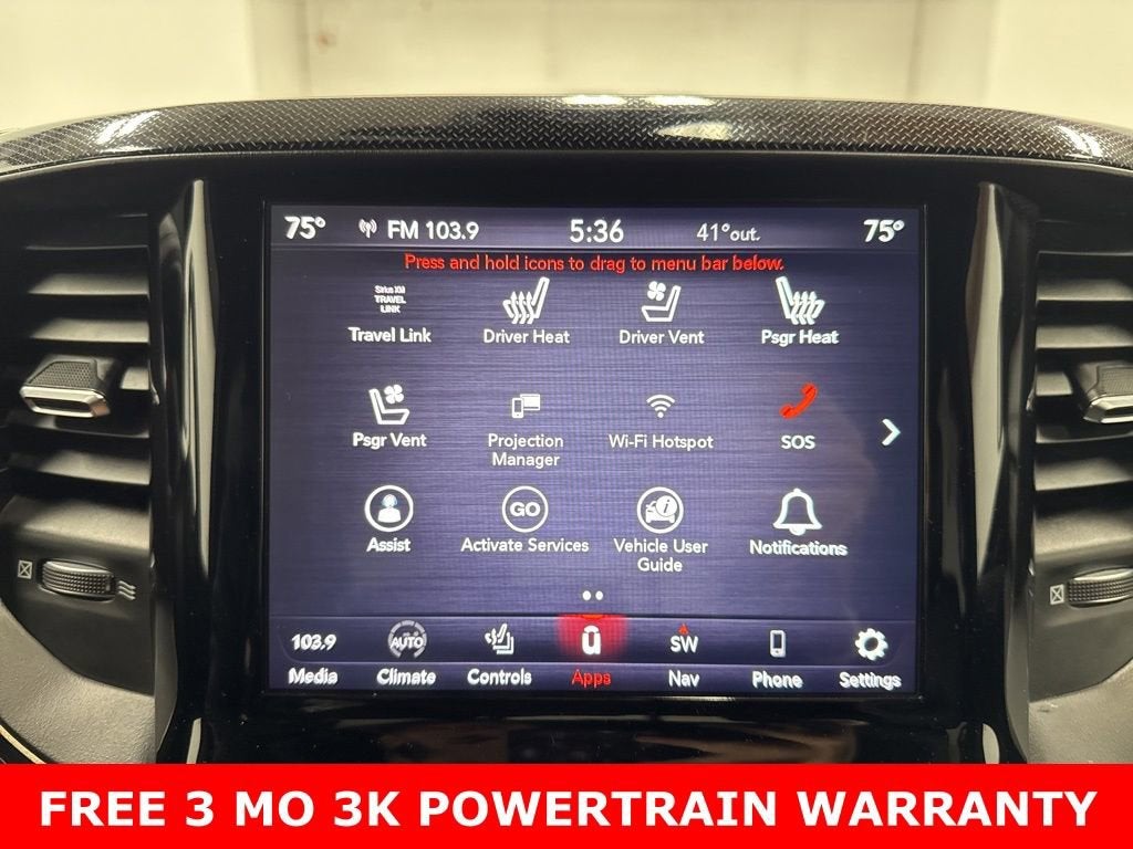 ** 3 MONTH / 3000 MILE POWERTRAIN APPLIES **, 1-Year SiriusXM Radio Service, 3.92 Rear Axle Ratio, 4-Wheel Disc Brakes, 48V Belt Starter Generator, 6 Speakers, ABS brakes, Air Conditioning, Alloy wheels, AM/FM radio: SiriusXM, Brake assist, Cloth/Vinyl Low Back Bucket Seats, Compass, Delay-off headlights, Driver door bin, Dual front impact airbags, Dual front side impact airbags, Electronic Stability Control, For More Info, Call 800-643-2112, Front anti-roll bar, Front Bucket Seats, Front Center Armrest w/Storage, Front fog lights, Front reading lights, Front wheel independent suspension, Fully automatic headlights, GPS Antenna Input, Heated door mirrors, Illuminated entry, Leather steering wheel, Low tire pressure warning, Occupant sensing airbag, Outside temperature display, Overhead airbag, Overhead console, Panic alarm, ParkView Rear Back-Up Camera, Passenger door bin, Passenger vanity mirror, Power door mirrors, Power driver seat, Power steering, Power windows, Radio data system, Radio: Uconnect 3 w/5 Display, Rear anti-roll bar, Rear seat center armrest, Rear step bumper, Remote keyless entry, SiriusXM Satellite Radio, Speed control, Split folding rear seat, Steering wheel mounted audio controls, Tachometer, Telescoping steering wheel, Tilt steering wheel, Traction control, Trip computer, Variably intermittent wipers, Voltmeter, Wheels: 18 x 8 Painted Black.