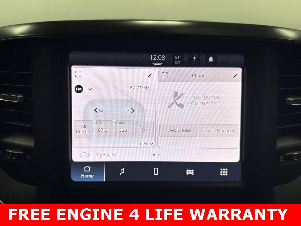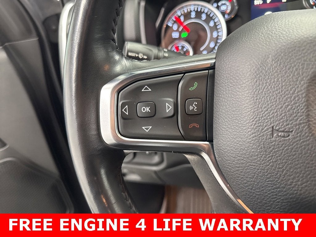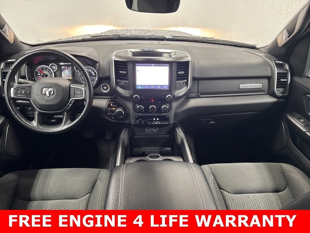 ** ENGINES 4 LIFE WARRANTY APPLIES **, 2nd Row In Floor Storage Bins, 3 Rear Seat Head Restraints, 4 Way Front Headrests, 4-Wheel Disc Brakes, 48V Belt Starter Generator, 4G LTE Wi-Fi Hot Spot, 6 Speakers, ABS brakes, Air Conditioning, Alloy wheels, AM/FM radio, Apple CarPlay, Auto-Dimming Exterior Driver Mirror, Auto-Dimming Rear-View Mirror, Big Horn Badge, Big Horn Level 1 Equipment Group, Black Premium Power Mirrors, Bluetooth® Handsfree Phone & Audio, Brake assist, Bumpers: chrome, Class IV Receiver Hitch, Cloth Bench Seat, Compass, Connectivity - US/Canada, Convex Wide-Angle Exterior Mirror Insert, Delay-off headlights, Driver door bin, Dual front impact airbags, Dual front side impact airbags, Electric Shift-On-Demand Transfer Case, Electronic Stability Control, Emergency communication system: RAM Connect, Exterior Mirrors Courtesy Lamps, Exterior Mirrors w/Heating Element, Exterior Mirrors w/Supplemental Signals, For Details, Visit DriveUconnect.com, For More Info, Call 800-643-2112, Front anti-roll bar, Front Center Armrest w/Storage, Front Fog Lamps, Front reading lights, Front Seat Back Map Pockets, Front wheel independent suspension, Fully automatic headlights, Global Telematics Box Module (TBM), Glove Box Lamp, Google Android Auto, Heated door mirrors, Heated Front Seats, Heated Steering Wheel, Illuminated entry, Integrated Voice Command w/Bluetooth®, Leather steering wheel, Low tire pressure warning, Manufacturer's Statement of Origin, MOPAR Front & Rear Rubber Floor Mats, Occupant sensing airbag, Outside temperature display, Overhead airbag, Overhead console, Panic alarm, ParkView Rear Back-Up Camera, Passenger door bin, Passenger Sun Visor w/Illuminated Mirror, Passenger vanity mirror, Power door mirrors, Power steering, Power windows, Power-Folding Mirrors, Quick Order Package 23Z Big Horn, Radio data system, Radio: Uconnect 3 w/5 Display, Radio: Uconnect 5 W w/8.4 Display, RAM Grille Badge - Chrome, Rear 60/40 Folding Seat, Rear anti-roll bar, Rear Dome w/On/Off Switch Lamp, Rear Power Sliding Window, Rear seat center armrest, Rear step bumper, Rear Window Defroster, Remote keyless entry, Remote Start System, SiriusXM Radio Service, SiriusXM Satellite Radio, Speed control, Split folding rear seat, Steering wheel mounted audio controls, Tachometer, Telescoping steering wheel, Tilt steering wheel, Traction control, Trailer Brake Control, Trip computer, USB Host Flip, Variably intermittent wipers, Voltmeter, Wheels: 18 x 8 Cast-Aluminum Painted.